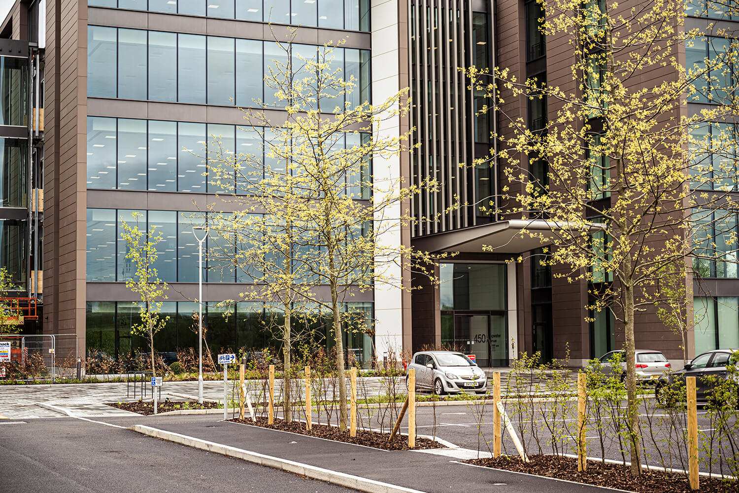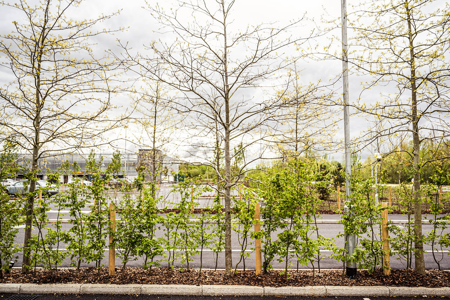 The process of planting the tree avenue leading into the carpark was a technical but amazing system called the RootSpace® Pavement Support System. This cell apparatus closely replicates the forest floor providing the trees with uncompacted and airy soil which is prominent to its long-term health. The key benefits to this system are that it can be used close to highways due to world leading lateral performance, it is very fast and easy to put together which provided less installation time and costs, it gives optimum conditions for soil biology maximising root growth & tree health and also has minimum carbon footprint with 100% UK manufacture.